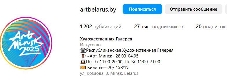Количество сердечек под постами нередко превышает 1000. Например, пост о результатах «Арт-Минск» с постановочными фото на фоне картин собрал 1098 лайков. Посты разной длины, информативные и сдержанные, без эмоций. В reels такая же история. Но больше всего лайков собирают посты-анонсы: выставок, конкурсов и других мероприятий.