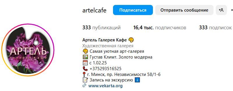 Позиционируют себя как самую уютную арт-галерею. И это отражено в постах, которые перемежаются цветами и посетителями на фоне цветов и картин. Артель-кафе устраивает фотосессии и выкладывает их в своих сторис.